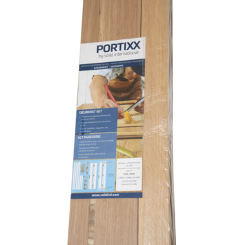 Deze deurkast in MPX hoort bij de omkeerbare eiken deuren . De set bevat de deurkast, deurlijsten, slaglatten, slot en scharnieren, en is afgewerkt met eik fineer.
