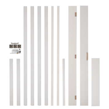 Deze deurkast in voorgeverfde MPX hoort bij de brandwerende deuren. De set bevat de deurkast, deurlijsten, slaglatten, slot en scharnieren