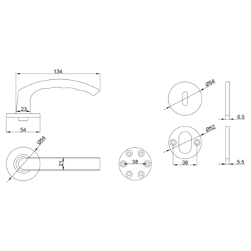 Deurkrukset Edinburgh rond rozet aluminium RVS
