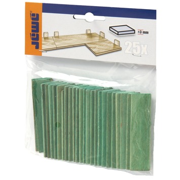 Een dikteblokje of een aanslagblokje helpt je om je laminaat of parket perfect te leggen. Tik je vloer aan op het aanslagblokje met een aanslagijzer waardoor de verschillende planken naadloos in elkaar overgaan, verwijder het aanslagblokje en ga verder met het leggen van je planken . Maak je keuze uit een blokje met verschillende diktes, waaronder dit blokje van Jéwé met een dikte van 1 mm (25 stuks).