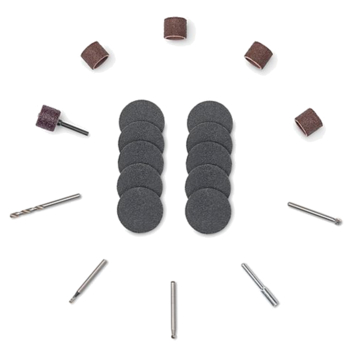 De 20-delige Dremel accessoireset voor verschillende toepassingen op hout bv. graveren, schuren & boren met meer dan € 10 extra waarde.