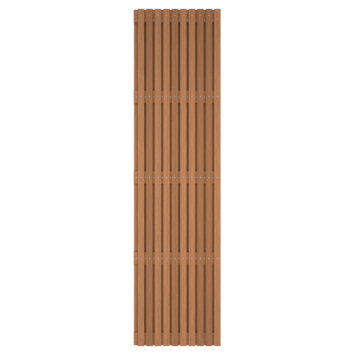 Verrijk je buitenruimte met een decoratief thermisch gemodificeerd ayous latten wandpaneel. Baad in luxe met deze prachtige eyecatcher! Een eigentijdse combinatie van strakke lijnen en egale look. Het ayous is thermisch gemodificeerd dat de volgende voordelen met zich meebrengt. Het hout is erg duurzaam en gaat gemiddeld 15 tot 20 jaar mee. Het is licht van gewicht doordat er veel vocht uit het hout is onttrokken, ook werkt het hout hierdoor nagenoeg niet. Doordat het hout zachter is, is het gemakkelijk te bewerken. De latten-trend is zowel in het interieur als in de tuin niet meer weg te denken. Dit latten wandpaneel Andalusië is 240 cm hoog, 62 cm breed en 4,2 cm diep. Het paneel heeft 10 latten aan de voorzijde en 10 latten aan de achterzijde welke op 5 horizontale latten bevestigd zijn. Het paneel is vanaf één zijde geschroefd waardoor het paneel een voor- en achterkant heeft.