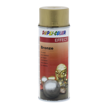 Geef je voorwerpen een bronzen afwerking met deze spuitlak van Dupli-Color Effect. Deze spuitlak op solvent basis heeft een hoge dekkracht en een mooie matte afwerking. De lak is geschikt voor allerlei materialen, zowel voor binnen als buiten.