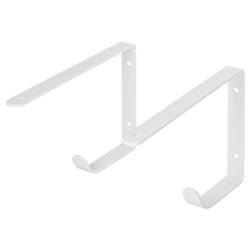 Duraline Plankdrager Metaal met Haak - 22 cm - Wit - 2 stuks Maak gebruik van deze handige Duraline Plankdragers met Haak om planken en andere decoratieve items op te hangen! De witte metalen plankdragers hebben een lengte van 22 cm en worden geleverd in een set van 2 stuks. De bijbehorende haak biedt extra opbergruimte voor het ophangen van handdoeken, sleutels of andere kleine items. De plankdragers zijn eenvoudig te bevestigen en geschikt voor planken met een dikte van maximaal 20 mm. De perfecte toevoeging voor elk interieur!