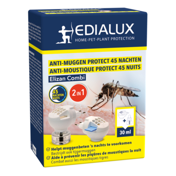 Elektrische apparaat op basis van tabletten of een vloeistof ter bestrijding van muggen binnenshuis. Bevat een pyrethroïde die effectief is tegen muggen, waaronder de tijgermug. Unieke 2-in-1 formule waarbij je het apparaatje zowel met tabletten als vloeistof kan gebruiken. Tabletten en vloeistof ook als navulling te verkrijgen.