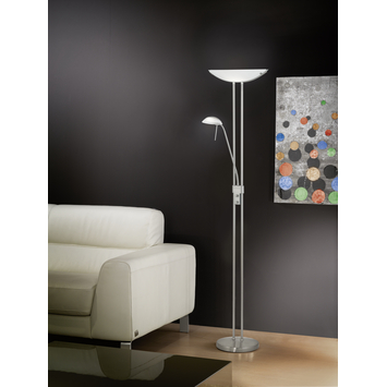 De EGLO vloerlamp 'Baya' geschikt voor diverse woonruimtes. is 180 cm hoog. Deze lamp is gemaakt van staal en is afgewerkt in de kleur nikkel mat en wordt geleverd inclusief halogeen lichtbron(nen).