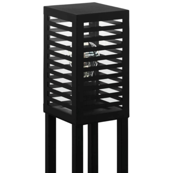 De ALAMONTE 3 tuinpaal heeft een kubusvormige behuizing van zwart metaal met glazen ruiten aan de bovenkant. Het streepdesign maakt het karakteristieke uiterlijk van de paallamp stijlvol af en zorgt tegelijkertijd voor een aangename sfeer en indirect licht. Met IP44-bescherming tegen spatwater is deze paallamp geschikt voor buitengebruik en past ze uitstekend in moderne buitenruimtes. Het product vereist een E27-lichtbron die niet is inbegrepen.