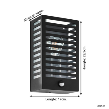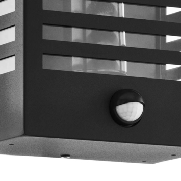 De buitenwandlamp ALAMONTE 3 heeft een kubusvormig metalen frame met panelen van helder glas. Het streepdesign maakt het karakteristieke uiterlijk van de lamp stijlvol af en zorgt tegelijkertijd voor een aangename sfeer en indirect licht. De wandlamp is bovendien uitgerust met een bewegingssensor en gaat automatisch aan, waardoor slecht zichtbare zones worden verlicht en ongewenste bezoekers worden afgeschrikt. De geïntegreerde schemersensor meet het omgevingslichtniveau, zodat de lamp alleen inschakelt wanneer dat nodig is. Met IP44 bescherming tegen spatwater is deze buitenlamp geschikt voor buitengebruik en past ze uitstekend in moderne buitenruimtes. Het product vereist een E27-lichtbron die niet is inbegrepen.