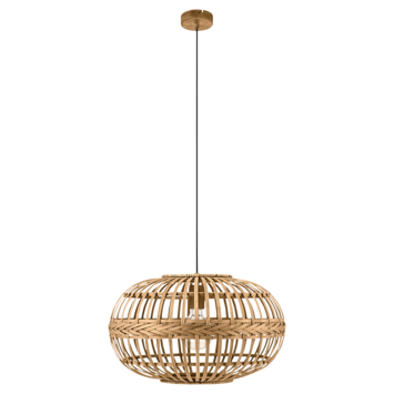 De Eglo hanglamp Amsfield is exclusief voor de E27 lichtbron. De hanglamp heeft een bamboe uitstraling en is gemaakt van hout. De hanglamp heeft een diameter van 38 cm. Het natuurlijke materiaal (bamboe) maakt de lamp uniek in zijn soort. Het open design creëert bijzondere effecten op wanden en muren en zorgt ervoor dat de lichtbron goed zichtbaar is. De hanglamp kan tot 110 cm in hoogte worden versteld.