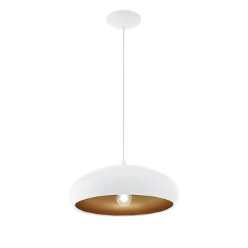 De EGLO hanglamp Mogano is exclusief voor de E27 lichtbron. De hanglamp is gemaakt van metaal. Omdat bij de hanglamp de lichtbron niet wordt meegeleverd, kan jezelf kiezen voor een dimbare lichtbron. Met een externe dimmer kan je deze vervolgens dimmen. De lengte van de hanglamp kan tot 110 cm in hoogte versteld worden. De lampenkap heeft een diameter van 40 cm. De hanglamp Mogano is afgewerkt in de kleur wit, koper.