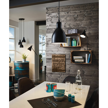 De Eglo hanglamp is exclusief voor de E27 lichtbron. De hanglamp heeft een diameter hebben van 15,5 cm. De hanglamp is gemaakt van metaal en is volledig in het zwart. De binnenkant van de lampenkap heeft een lichte kleur. De hoogte van de lamp kun je zelf bepalen tot maximaal 110 cm. Je past eenvoudig de hoogte van de draden aan voor je Priddy aan het plafond hangt. Sluit deze lamp aan op een dimmer (niet meegeleverd) om op elk moment de juiste sfeer te creëren.