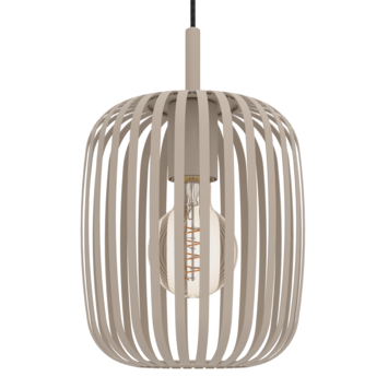 Ontdek de Romazzina ronde hanglamp, een prachtig ontwerp bestaande uit vijf ronde lampenkappen vervaardigd van platte metalen strips in een zand kleur. Deze unieke lampenkappen zweven op verschillende hoogtes aan een elegant zwart textiel snoer, wat een speels en dynamisch effect creëert. De metalen strips werpen boeiende patronen van licht en schaduw op de omringende oppervlakken zodra de lamp wordt ingeschakeld. Met zijn zachte, ballonvormige lampenkappen is de Romazzina hanglamp een tijdloze toevoeging aan moderne interieurs. Of het nu boven een keukeneiland, in de woonkamer, of boven een lange eettafel hangt, deze lamp biedt een eigentijds designaccent voor elke ruimte. Let op: de afgebeelde lichtbronnen zijn niet inbegrepen. De afgebeelde lichtbron wordt niet meegeleverd. Het armatuur is geschikt voor alle lichtbronnen met E27 fitting.