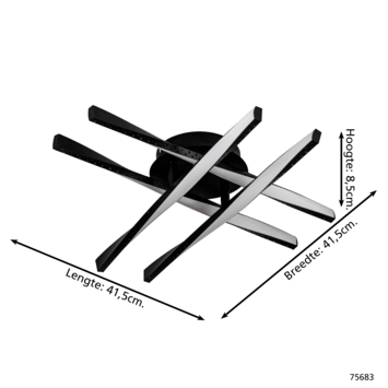 Deze wand-, plafondlamp Adeje LED van zwart metaal heeft vier getordeerde verlichtingselementen. De achter de witte plastic kapjes geïntegreerde LED's geven een aangenaam warm wit licht. Dankzij het minimalistische ontwerp biedt deze plafondlamp moderne verlichting in elke ruimte, of het nu gaat om een keuken, woonkamer, slaapkamer, hal of eetkamer.