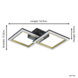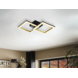 De Eglo plafondlamp Calliera LED van zwart metaal met messingkleurige accenten heeft twee vierkante verlichtingselementen van verschillende grootte. De achter de witte kunststof kapjes geïntegreerde LED's geven een aangenaam warm wit licht. Dankzij het minimalistische ontwerp biedt deze plafondlamp moderne verlichting in elke ruimte, of het nu gaat om een keuken, woonkamer, slaapkamer, hal of eetkamer.