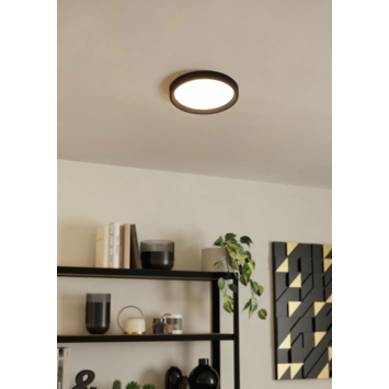 De plafonniere Idun van EGLO is een ronde plafondlamp in de kleur zwart die in elke ruimte past. De lamp heeft een ingebouwde ledlichtbron van 15 watt die zorgt voor warm-wit licht met een lichtopbrengst van 1600 lumen met warm wit licht (3000K). Idun heeft een diameter van 28,5 centimeter.