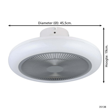 De KOSTRENA LED plafondlamp met geïntegreerde ventilator heeft een compacte behuizing van ABS-kunststof met een opalen afwerking en een grijs ventilatie-element in het midden. Door het compacte ontwerp is deze gecombineerde plafondlamp/ventilator ideaal voor woningen met lage plafonds en past hij bij diverse interieurstijlen. De ventilator is is d.m.v. de meegeleverde afstandsbediening regelbaar in drie verschillende snelheden, terwijl de geïntegreerde LED-componenten via de diffuser een regelbaar wit licht produceren. Deze moderne plafondventilator heeft een ingebouwde AC-motor en een luchtstroom-vermogensverhouding van 1960 m³/min. Met een veelzijdig ontwerp biedt deze multifunctionele plafondventilator een scala aan voordelen en past hij ideaal in elke kamer.