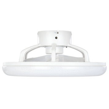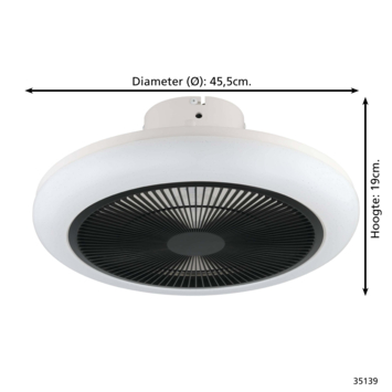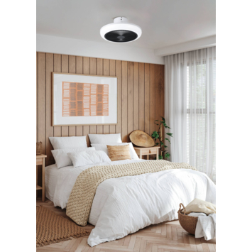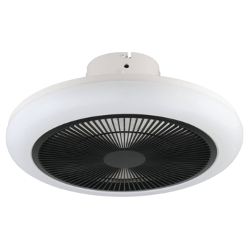 De KOSTRENA LED plafondlamp met geïntegreerde ventilator heeft een compacte behuizing van ABS-kunststof met een opalen afwerking en een zwart ventilatie-element in het midden. Door het compacte ontwerp is deze gecombineerde plafondlamp/ventilator ideaal voor woningen met lage plafonds en past hij bij diverse interieurstijlen. De ventilator is is d.m.v. de meegeleverde afstandsbediening regelbaar in drie verschillende snelheden, terwijl de geïntegreerde LED-componenten via de diffuser een regelbaar wit licht produceren. Deze moderne plafondventilator heeft een ingebouwde AC-motor en een luchtstroom-vermogensverhouding van 1960 m³/min. Met een veelzijdig ontwerp biedt deze multifunctionele plafondventilator een scala aan voordelen en past hij ideaal in elke kamer.