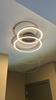 De plafondlamp Palmaves 2 LED van zwart metaal heeft twee ronde verlichtingselementen van verschillende grootte. De achter de witte plastic kapjes geïntegreerde LED's geven een aangenaam warm wit licht. Dankzij het minimalistische ontwerp biedt deze plafondlamp moderne verlichting in elke ruimte, of het nu gaat om een keuken, woonkamer, slaapkamer, hal of eetkamer.