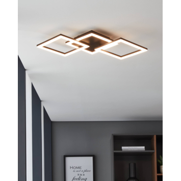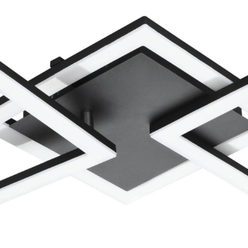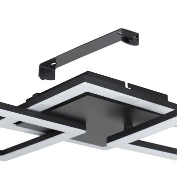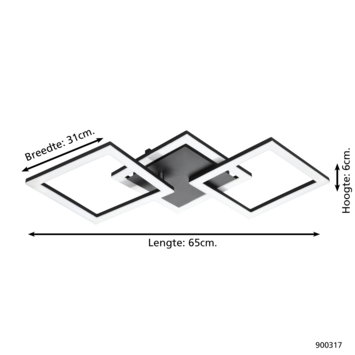 De plafondlamp Paranday Zigbee Connect CCT-LED van zwart metaal heeft drie vierkante verlichtingselementen waarvan er 1 draaibaar is. De achter de witte plastic kapjes geïntegreerde LED's kunnen via een gratis app of met een optionele afstandsbediening eenvoudig van functioneel wit licht aangepast worden naar aangenaam warm wit licht. Ook kun je deze plafondlamp dimmen of programmeren via de App. Daarnaast is deze lamp bedienbaar via de bekende Voice control devices (Alexa, Google assistent). Dankzij het minimalistische ontwerp biedt deze plafondlamp moderne verlichting in elke ruimte, of het nu gaat om een keuken, woonkamer, slaapkamer, hal of eetkamer.