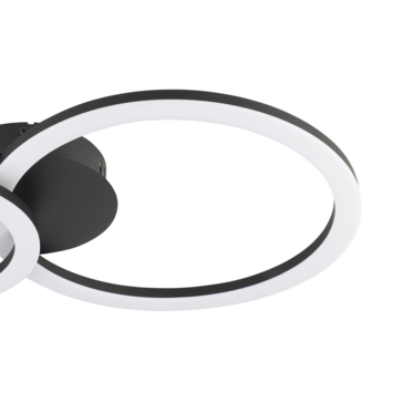 De plafondlamp Parrapos Zigbee Connect CCT-LED van zwart metaal heeft twee ronde verlichtingselementen van verschillende grootte. De achter de witte plastic kapjes geïntegreerde LED's kunnen via een gratis app of met een optionele afstandsbediening eenvoudig van functioneel wit licht aangepast worden naar aangenaam warm wit licht. Ook kun je deze plafondlamp dimmen of programmeren via de App. Daarnaast is deze lamp bedienbaar via de bekende Voice control devices (Alexa, Google assistent). Dankzij het minimalistische ontwerp biedt deze plafondlamp moderne verlichting in elke ruimte, of het nu gaat om een keuken, woonkamer, slaapkamer, hal of eetkamer.