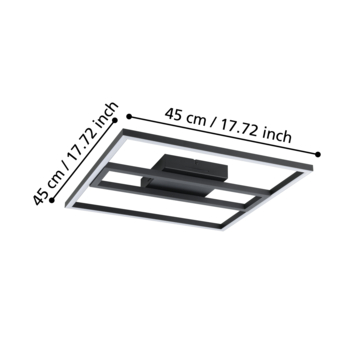 De plafondlamp Calagrano Zigbee Connect CCT-LED van zwart metaal heeft twee rechthoekige verlichtingselementen van verschillende grootte. De achter de witte plastic kapjes geïntegreerde LED's kunnen via een gratis app of met een optionele afstandsbediening eenvoudig bediend worden De grote rechthoek is instelbaar van functioneel wit licht naar aangenaam warm wit licht. De kleine rechthoek is aan de achterzijde voorzien van RGB LED's. Hiermee creëer je eenvoudig je eigen ambiance backlight. Ook kun je deze plafondlamp dimmen of programmeren via de App. Daarnaast is deze lamp bedienbaar via de bekende Voice control devices (Alexa, Google assistent). Dankzij het minimalistische ontwerp biedt deze plafondlamp moderne verlichting in elke ruimte, of het nu gaat om een keuken, woonkamer, slaapkamer, hal of eetkamer.