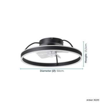 Deze ventilator is een stijlvolle en functionele toevoeging aan het interieur en combineert verlichting en luchtcirculatie in één modern ontwerp.