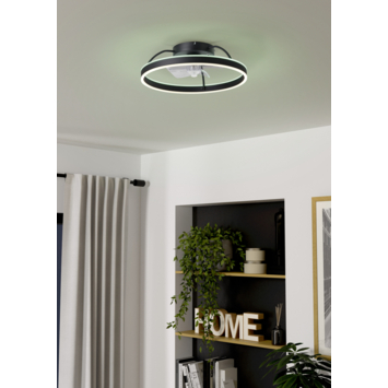 De EGLO ventilator met LED verlichting Marinella in mat zwart combineert een krachtig formaat met een moderne uitstraling. Deze plafondventilator heeft een diameter van 50 centimeter en is uitgevoerd met transparante blades, wat zorgt voor een stijlvolle en lichte look in de ruimte.