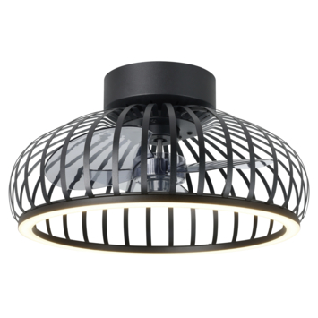 De EGLO ventilator met LED verlichting Mogano combineert stijlvolle elegantie met slimme functionaliteit. Deze plafondventilator heeft een diameter van 42,8 centimeter en is uitgevoerd in mat zwart met metalen flat-blades in smoke-uitvoering.