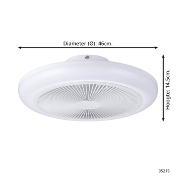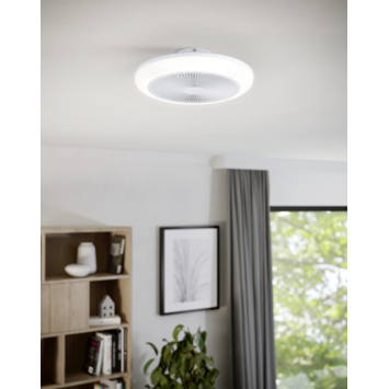 De EGLO ventilator met LED verlichting Sayulita in wit combineert een frisse uitstraling met veelzijdige functies. Deze plafondventilator heeft een diameter van 46 centimeter en is uitgevoerd in een volledig witte afwerking, waardoor hij moeiteloos past in uiteenlopende interieurstijlen.