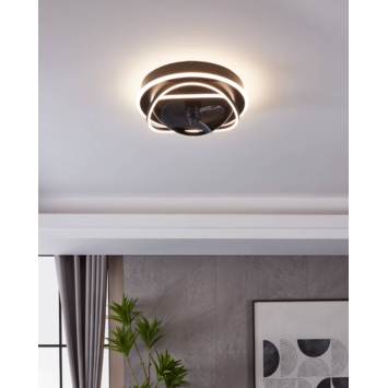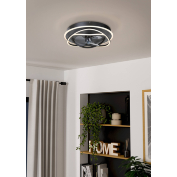 De Eglo plafondventilator Namori met lamp is een uitstekende keuze voor het verlichten en verfrissen van je binnenruimte. Gemaakt van stevig kunststof, heeft de ventilator een moderne zwarte kleur die zich gemakkelijk in diverse interieurstijlen voegt. De ventilator beschikt over een dimbare lamp met 1 lichtpunt en een wattage van 32W, wat zorgt voor een aangename verlichting in elke kamer. Dankzij de afstandsbediening kun je de ventilator en verlichting eenvoudig bedienen. Dit model is speciaal ontworpen voor binnengebruik en biedt een praktische oplossing voor zowel verlichting als luchtcirculatie in je woning. De Eglo Namori ventilator combineert stijl met functionaliteit en draagt bij aan het comfort in je huis.