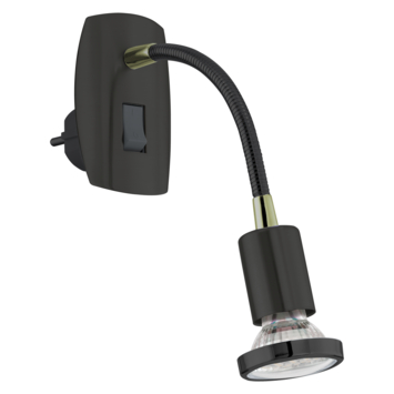 De stekkerspot Parrini flex is een zwarte stekkerspot met gouden touch van EGLO. Dankzij de buigbare hals kun je preciezer bepalen waarheen het licht moet schijnen. De lamp heeft een GU10-fitting waarvoor de lichtbron meegeleverd wordt. De lichtbron van 4,5 watt zorgt voor een warm wit licht met een lichtopbrengst van 345 lumen. De lamp kan rechtstreeks in het stopcontact gestoken worden. Je kunt de stekkerspot makkelijk aan en uit zetten via de schakelaar op de basis.