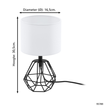 De Eglo tafellamp Carlton zwart/wit is geschikt voor een lichtbron met een maximaal vermogen van 60 W met een standaard E14 lampfitting. Door het plaatsten van een energiezuinige LED-lichtbron verbruik je minder energie dan met een "gewone" gloeilamp of spaarlamp. De voet van de lamp is gemaakt van staal en afgewerkt in de kleur zwart. Hierdoor heeft de hanglamp een industriële vormgeving met een moderne uitstraling. De stoffen kap is wit en laat een mooi diffuus licht door. Hierdoor is de Eglo tafellamp Carlton een echte blikvanger voor in elk modern interieur.