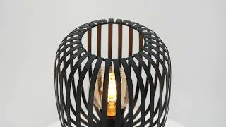De ROMAZZINA tafellamp bestaat uit een ronde kap van zwartkleurige platte metalen stroken en een metalen voet met drie poten. De metalen strips creëren een fascinerend spel van licht en schaduw wanneer de lamp wordt ingeschakeld. Hij kan ook gemakkelijk worden in- en uitgeschakeld met een schakelaar op de kabel. De New Nordic design tafellamp past perfect in moderne interieurs. Het biedt een modern ontwerp voor elke kamer - of het nu in de slaapkamer, op het nachtkastje, in de woonkamer, eetkamer of hal is. De afgebeelde gloeilamp is niet inbegrepen. Het armatuur is geschikt voor alle lampen met E27 fitting.