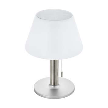 De EGLO solar tafellamp Solar' geschikt voor diverse woonruimtes. is 29 cm hoog. Deze lamp is gemaakt van kunststof en is afgewerkt in de kleur zilver en wordt geleverd inclusief energiezuinige LED lichtbron(nen).