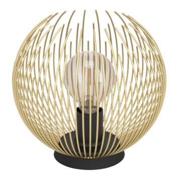 De tafellamp Venezuela bestaat uit een lichaam van gouddraad en een ronde voet van zwart metaal. De draadkap omsluit de lamp binnenin met zijn harmonieuze ronding, waardoor een fascinerend spel van licht en schaduw ontstaat zodra het licht wordt ingeschakeld. Deze tafellamp is gemakkelijk aan en uit te schakelen met een schakelaar op het snoer en vult moderne interieurs aan. Hij zorgt voor stijlvolle verlichting in elke kamer, of het nu de woonkamer, slaapkamer of hal is. De afgebeelde lichtbron is niet inbegrepen. De lamp is compatibel met elke E27 lamp.