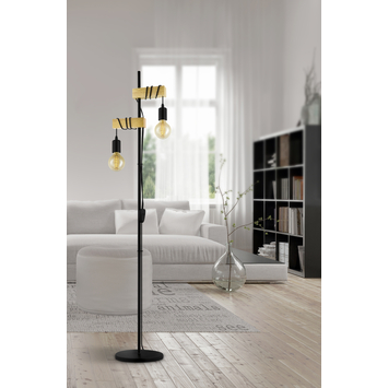 De EGLO vloerlamp 'Townshend' geschikt voor diverse woonruimtes. is 166,5 cm hoog. Deze lamp is gemaakt van staal en hout en is afgewerkt in de kleur zwart en bruin.