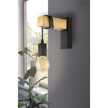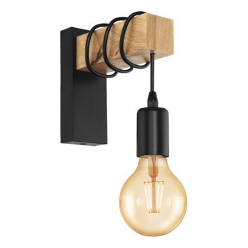 Met deze wandlamp heb je een moderne sfeermaker in huis. De lamp is gemaakt van hout en zwart staal en heeft daardoor een industrieel effect. De lamp voor aan de muur bestaat uit 1 lamp die aan een draad bevestigd is. Deze lamp met draad kun je naar eigen smaak om de houten balk wikkelen. Hierdoor kun je dus zelf kiezen hoe hoog de lamp moeten komen te hangen. De lamp heeft E27 fitting, is 21,5 cm hoog en is zeer geschikt voor diverse woonkamers. Kortom: met de Eglo Townshend wandlamp heb je een robuuste en moderne lamp in huis.
