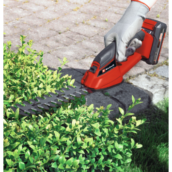 De Einhell GE-CG 18 Li Solo Accu Gras- en Heggenschaar is een ideale machine voor het onderhouden van je tuin. Gebruik de machine onder meer voor het bijwerken van kleine struiken en heggetjes, knip het gazon aan de zijkant kort of onderhoud het gazon op lastig te bereiken plaatsen voor een grasmaaier. Deze machine maakt deel uit van de Power-X-Change productlijn van Einhell. Een lange levensduur van deze accu gras- en heggenschaar wordt bevorderd door de metalen tandwielaandrijving. Deze zorgen voor een minimale slijtage, waardoor de machine lang mee gaat. Om een optimaal snoeiresultaat te kunnen behalen, beschikt de machine over laser en diamant geslepen snijbladen. Standaard wordt er een gras- en heggenschaar snijblad met de machine meegeleverd, zodat je direct aan de slag kan gaan. Met de grasschaar kun je een knipbreedte van 100 mm bereiken. De heggenschaar levert een snoeibreedte van 200 mm en kan door takjes van maximaal 8 mm komen. De tanden op de heggenschaar staan op 8 mm afstand van elkaar. Aan de bovenzijde van de machine zit een softgrip handgreep, waarmee de machine stevig en comfortabel in de hand ligt. De softgrip handgreep biedt een grote mate van grip en absorbeert daarbij een deel van de trillingen tijdens het gebruik van de machine. Het is mogelijk om zonder het gebruik van extern gereedschap te wisselen van de heggenschaar naar de grasschaar. Zo kun je snel schakelen tussen beide functies om het onderhoud van je tuin snel te kunnen hervatten. Voor gebruik heb je 1x 18 V Power X-Change accu nodig. Geleverd zonder Power X-Change accu en lader (apart verkrijgbaar).
