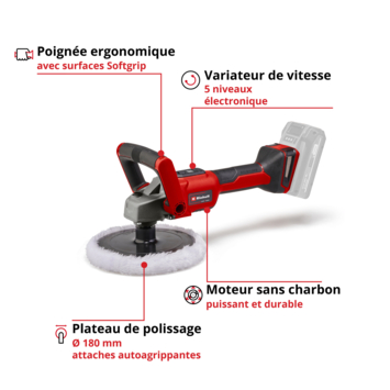 Ben je op zoek naar een veelzijdige machine die zowel kan polijsten als schuren? De Einhell CE-CP 18/180 Li E Solo accu polijst-/schuurmachine is precies wat je nodig hebt. Met deze draadloze tool kun je flexibel en efficiënt werken in huis, de werkplaats of zelfs de garage. De polijst-/schuurmachine is onderdeel van de Einhell Power X-Change lijn, wat betekent dat je dezelfde accu kunt gebruiken voor al je andere PXC-gereedschap.