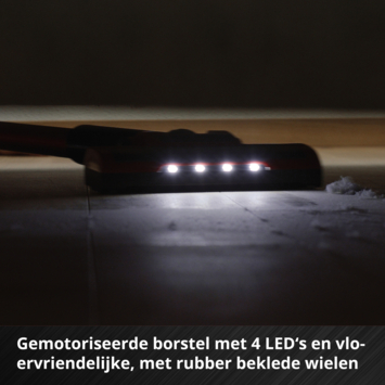 - Voorzien van 4 spotlight-LED's en een scharnier dat om twee assen draait voor het reinigen van donkere en krappe plaatsen.