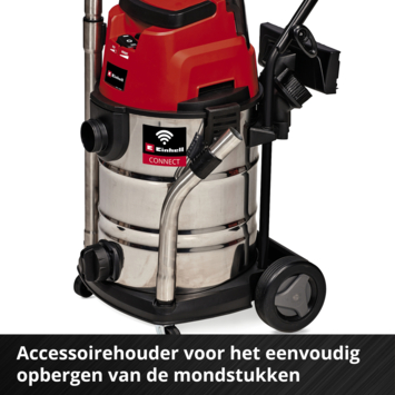 Met een stevige roestvrijstalen bak van 30 liter kun je zowel droog vuil als vloeistoffen eenvoudig opzuigen en het vuilwater gemakkelijk afvoeren via de handige wateraftapplug. De blaasaansluiting is ideaal voor het schoonblazen van moeilijk bereikbare plekken zoals hoeken en achter radiatoren. Dankzij de grote wielen en de praktische mobiliteit verplaats je de zuiger moeiteloos van de werkplaats naar de garage. Je kunt de accuzuuriger ook eenvoudig aansluiten op diverse Einhell gereedschappen, met automatische stofafzuiging die start zodra het gereedschap in werking is. De accessoirehouder houdt alles netjes en binnen handbereik.