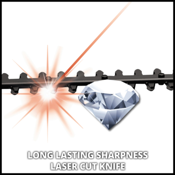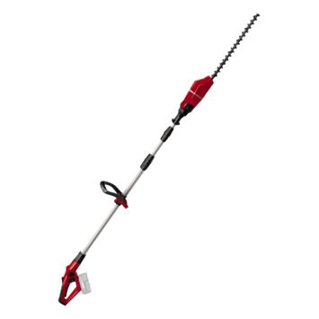 De Einhell Accu Telescopische Heggenschaar GE-HH 18/45 Li T is een zeer krachtige heggenschaar die dient voor het stroom onafhankelijke onderhoud van hagen, struiken en bomen op grote percelen, tuinen en in volkstuinen. De heggenschaar is onderdeel van de Einhell Power X-Change productlijn en werkt op een 18V Power X-Change accu. Alle accu’s uit de Power X-Change productlijn zijn te gebruiken in combinatie met deze heggenschaar. De metalen tandwielaandrijving heeft een lange levensduur en de laser gesneden en diamant geslepen messen zorgen voor schone snijresultaten. De zwaardlengte is 450 mm en de snijlengte 400 mm. Dit zorgt voor 1.700 sneden per minuut. De stabiele aluminium telescopische geleidesteel kan op elke hoogte traploos worden ingesteld en vast gezet. De geleidesteel kan tot 94 cm extra worden verlengd. De traploos instelbare extra handgreep is aan de gebruiker aangepast met zijn praktische quick-lock. Om zelfs moeilijke verticale en horizontale sneden eenvoudig en precies uit te voeren kan de motorkop worden afgesteld in 7 verschillende standen daarnaast is de handgreep draaibaar in 4 verschillende standen zodat het mogelijk is om de heggenschaar aan te passen aan de gewenste situatie. De heggenschaar kan comfortabel worden getransporteerd. Accu en lader zijn niet bij de levering inbegrepen.