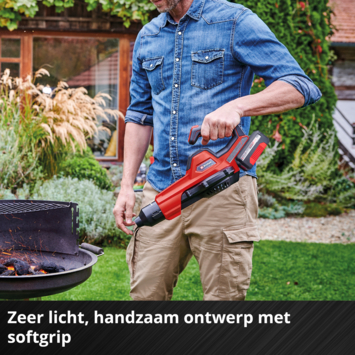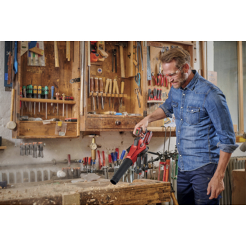 Met de Einhell GE-UB 18/250 Li E universele accu blazer kun je zowel binnen als buiten orde scheppen dankzij de draadloze vrijheid. Deze blazer maakt deel uit van de Power X-Change productlijn en werkt op een 18 V accu. De accu's van dit systeem zijn compatibel met meer dan 200 Einhell machines, zowel voor tuin- als werkplaatsgebruik. De blaasbuis is modulair en kan worden aangepast voor verschillende toepassingen: gebruik de lange buis als bladblazer, de middelgrote buis voor werkplaatsreiniging, en de korte precisiebuis als barbecueaansteker. De elektronische toerentalregeling zorgt voor een nauwkeurige aanpassing aan je behoeften, en de LED-indicator toont het ingestelde toerental in één oogopslag. Dankzij de softgrip ligt de blazer comfortabel in de hand, en de geïntegreerde wandhouder maakt het opbergen eenvoudig. Voor optimale prestaties wordt een accu van 2,5 Ah of hoger aanbevolen. Dit model wordt geleverd met een 4.0 Ah accu en oplader.