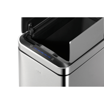 De EKO DeLuxe Phantom Sensor Afvalbak 30L is een stijlvolle afvalbak van geborsteld RVS met fingerprint proof coating en kunststof binnenemmer. Het sensormechanisme voorzien van touch switch zorgt ervoor dat de afvalbak zowel d.m.v. een sensor als via de touch knoppen te openen en sluiten is. Door het slanke design uitermate geschikt voor smalle ruimten. Het geruisloos sluitend deksel van geborsteld RVS opent in twee delen waardoor het gemakkelijk onder werkbladen past. De sensor zorgt voor een hygiënisch gebruik van de afvalbak. Door het afneembare deksel is de afvalzak eenvoudig te wisselen. Werkt op 6 AA batterijen (niet inbegrepen).
