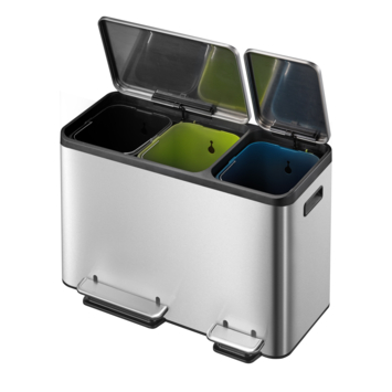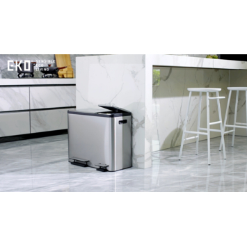 De EKO EcoCasa Pedaalemmer 15+15+15L is een rechthoekige pedaalemmer van geborsteld RVS met fingerprint proof coating en handige kunststof handgrepen. Voorzien van gedempt sluitende deksels. De twee pedalen geven afzonderlijk toegang tot de kunststof binnenemmers (2x 15 + 1x 15 liter) voor het scheiden van afval. De stay-open functie vergrendelt het deksel, voor het makkelijk schoonmaken van de afvalbak of wisselen van de afvalzak.
