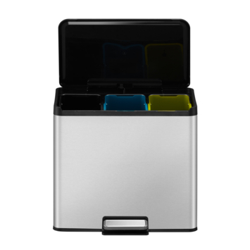 De EKO Essential Pedaalemmer 9+9+9L is een rechthoekige pedaalemmer van geborsteld RVS met fingerprint proof coating. Voorzien van gedempt sluitend kunststof deksel en drie kunststof binnenemmers (3x 9 liter) voor het scheiden van afval. De stay-open functie vergrendelt het deksel, voor het makkelijk schoonmaken van de afvalbak of wisselen van de afvalzak.