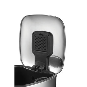 De EKO Regent Pedaalemmer 12L is een vierkante pedaalemmer van geborsteld RVS met fingerprint proof coating. Voorzien van kunststof binnenemmer, handgreep aan de achterzijde en geruisloos sluitend deksel met opvallend design.