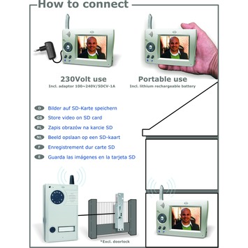 Een draadloze video intercom met draagbare TFT-kleurenmonitor. Zonder bedrading heeft u toch goed zicht en geluid. Als de bel gaat, neemt dit systeem automatisch beelden van de bezoeker op.
