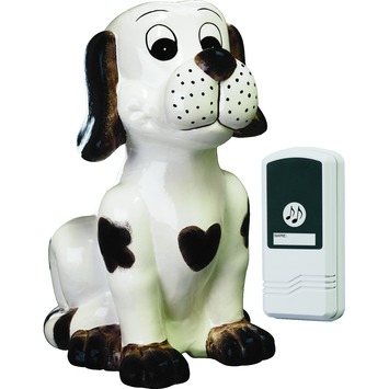 Triiing: de Elro bel doet het wel! Zeker als je voor deze draadloze deurbel in de vorm van een en zwart-witte hond kiest. Da's wat anders dan een saaie bel, hé? De draadloze deurbel met aparte drukknop werkt op batterijen, beschikt over 1 beltoon en biedt een garantie van 2 jaar.