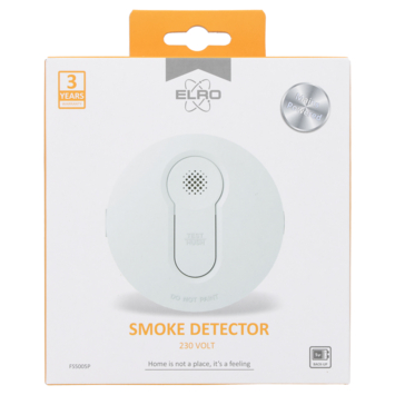 De Elro FS5005P optische rookmelder met batterij van vijf jaar werkt op 230 volt en blijft actief, zelfs bij een stroompanne. Zodra er rook vrijkomt, klinkt een luid alarm van meer dan 85 decibel zodat je meteen wakker wordt. Zo win je kostbare seconden om te reageren of te vluchten. Dankzij de back-up batterij blijft de melder dus ook functioneren wanneer de stroom het laat afweten.